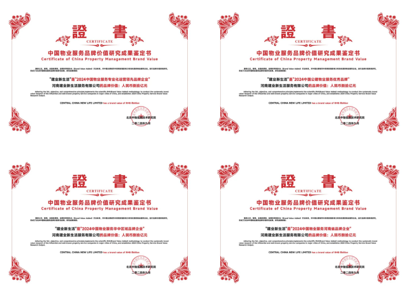 9月13日,由中國企業(yè)評價協(xié)會、清華大學(xué)房地產(chǎn)研究所、北京中指信息技術(shù)研究院主辦,北京中指信息技術(shù)研究院中國房地產(chǎn)TOP10研究組承辦的“2024中國房地產(chǎn)品牌價值研究成果發(fā)布會”召開。我們榮獲了2024中國物業(yè)服務(wù)專業(yè)化運(yùn)營領(lǐng)先品牌企業(yè)”“2024中國公建物業(yè)服務(wù)優(yōu)秀品牌”“2024中國物業(yè)服務(wù)華中區(qū)域品牌企業(yè)”“2024中國物業(yè)服務(wù)河南省品牌企業(yè)”四大獎項。
