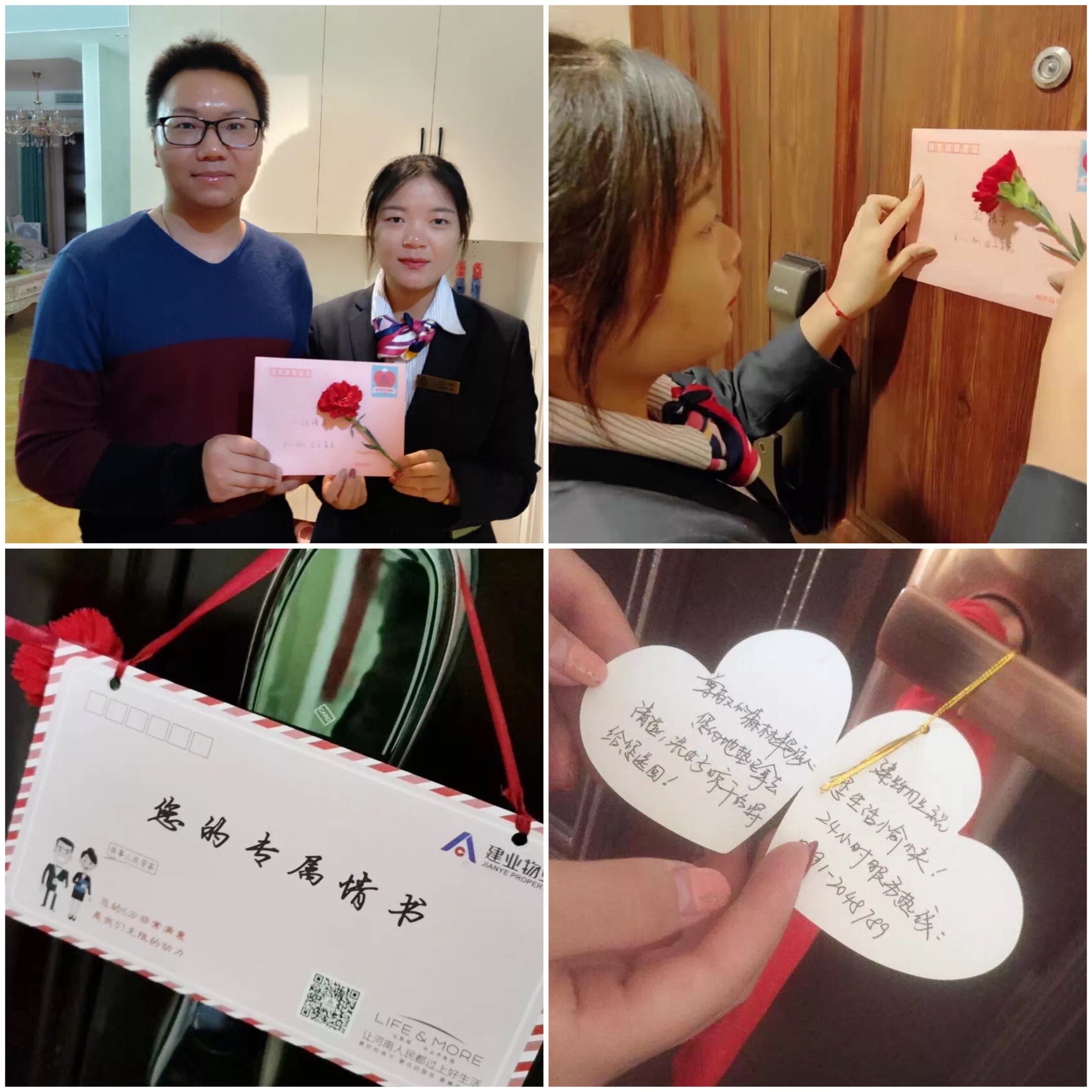建業(yè)物業(yè)注重提升業(yè)主生活中的儀式感。即使是平凡的日子里,工作人員也會(huì)為業(yè)主送去一封簡(jiǎn)單卻飽含深情的“情書”,道上幾聲樸素的問候,不僅點(diǎn)綴了業(yè)主的生活,更令業(yè)主驚喜又感動(dòng)。他們紛紛表示,住在建業(yè),感受到的幸福不是一刻,而是時(shí)時(shí)刻刻。